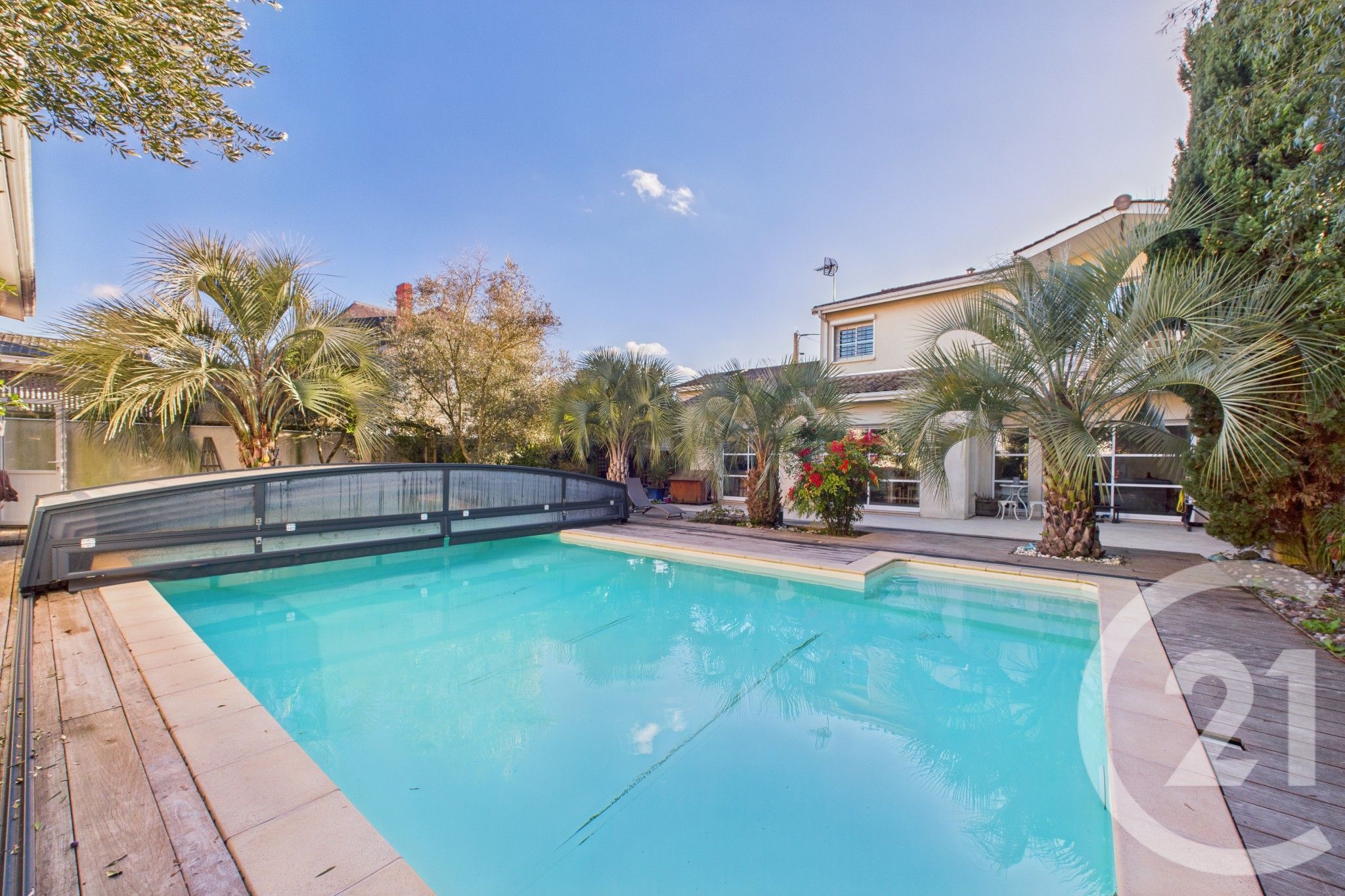 A l'extérieur, un jardin à l'abri des regards vous attend avec sa piscine parfaitement exposée, véritable oasis de fraîcheur pour les belles journées d'été.